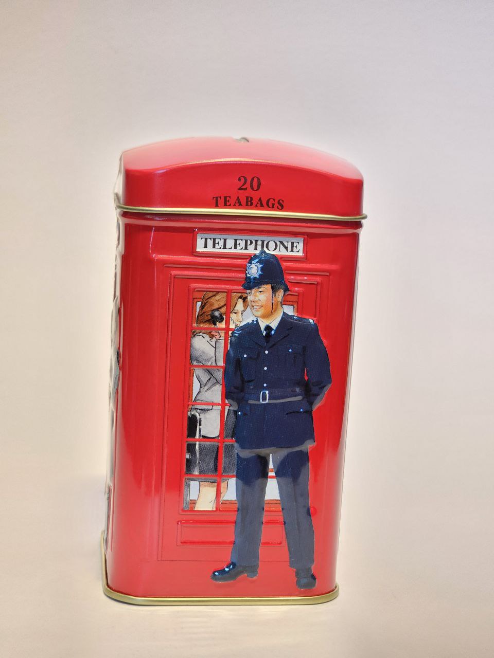 درون آن 20 عدد تی بگ چای انگلیسی قرار دارد. پس از اتمام چای می توان از آن به عنوان قلک استفاده کرد.
